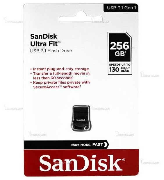Флешка SanDisk Ultra Fit USB 3.1 CZ430 256 ГБ, 1 шт., черный (SDCZ430-256G-G46)