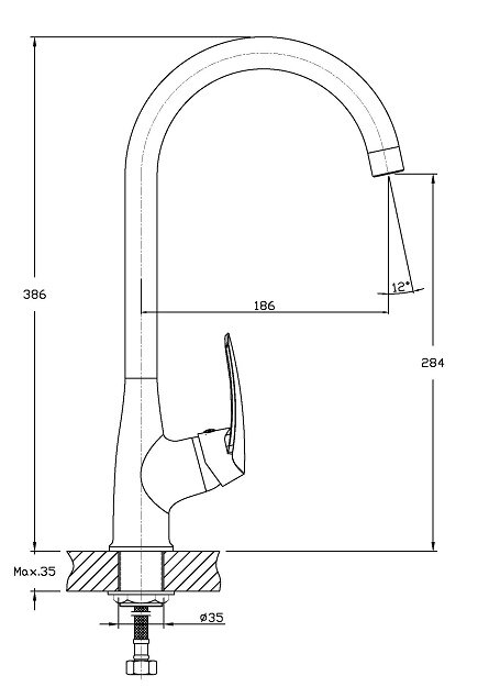 Смеситель для кухни боковой GRANFEST D-35mm (черный) Z3424