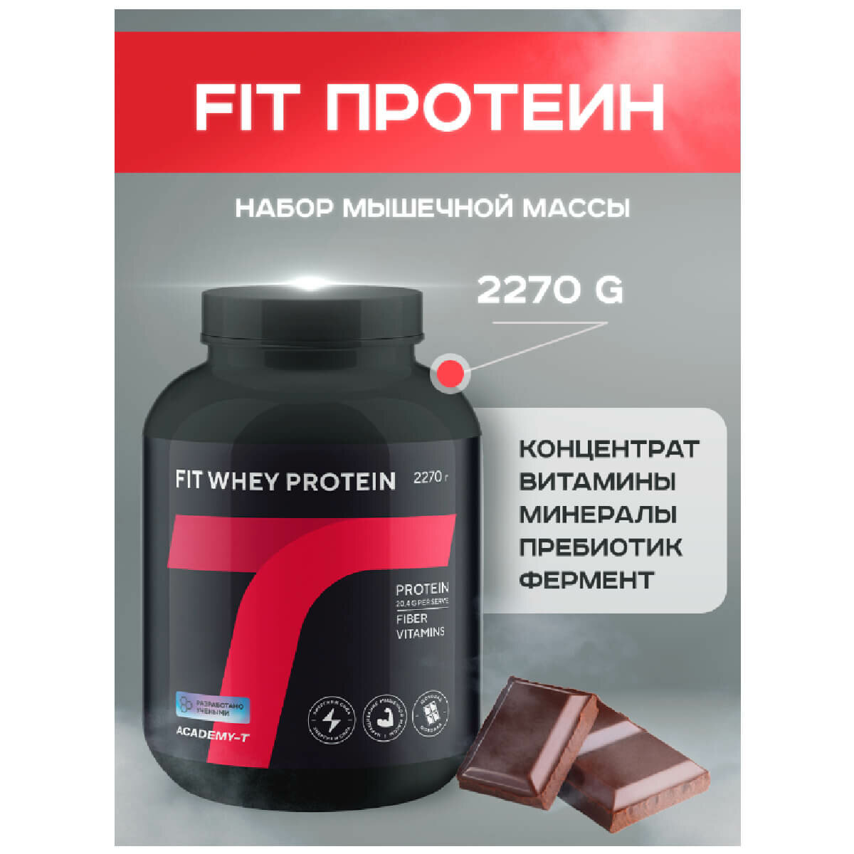 Протеин Академия-Т Сывороточный протеин FitPROTEIN, вкус шоколад, 2270 гр, Академия-Т