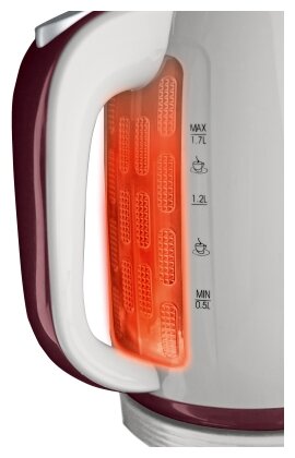 Лучшие цены. Технические характеристики Товар сертифицирован - Да Гарантия - 1 год Тип - чайник Объём - 1,7 л Мощность - 2400 Вт Тип нагревательного элемента - закрытая спираль Покрытие нагревательного элемента - хромированное Материал корпуса - пластик Особенности Блокировка крышки - Есть Блокировка включения без воды - Есть Фильтр - Есть Индикатор уровня воды - Есть Индикатор включения - Есть Подсветка воды при работе - Есть Отсек для шнура - Есть. Магазины в вашем городе.
