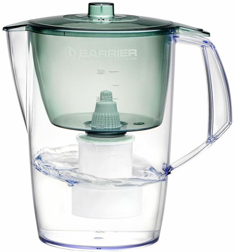 Лучшие цены. Кувшин классической формы для небольшой семьи с удобным календарным индикатором ресурса на крышке. Воронка автоматически откидывается при наклоне кувшина. Конструкция носика защищает воду от попадания пыли. Надежное резьбовое крепление кассеты исключает попадание неочищенной воды в уже отфильтрованную. В комплекте с кувшином кассета барьер Жесткость для вкусной воды без накипи. Также кассета защитит от хлора, тяжелых металлов и других вредных примесей. Магазины в вашем городе.
