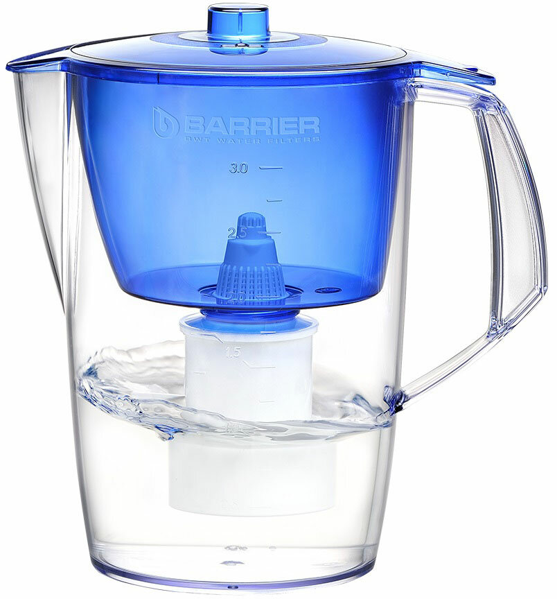 Лучшие цены. Кувшин классической формы для небольшой семьи с удобным календарным индикатором ресурса на крышке. Воронка автоматически откидывается при наклоне кувшина. Конструкция носика защищает воду от попадания пыли. Надежное резьбовое крепление кассеты исключает попадание неочищенной воды в уже отфильтрованную. В комплекте с кувшином кассета барьер Жесткость для вкусной воды без накипи. Также кассета защитит от хлора, тяжелых металлов и других вредных примесей. Магазины в вашем городе.