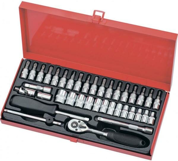 Лучшие цены. Количество предметов в комплекте: 38; Подробный состав комплекта: Инструменты под квадрат 1/4: головки с битами (18 шт.: Hех 3-4-5-6 мм, SL 4-5,5-7, PH 1-2-3, PZ 1-2-3, TX 8-10-15-20-25). Магазины в вашем городе.