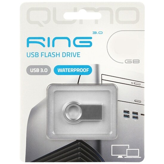 Накопитель QUMO 64GB Ring USB 3.0 цвет корпуса металлик (QM64GUD3-Ring)