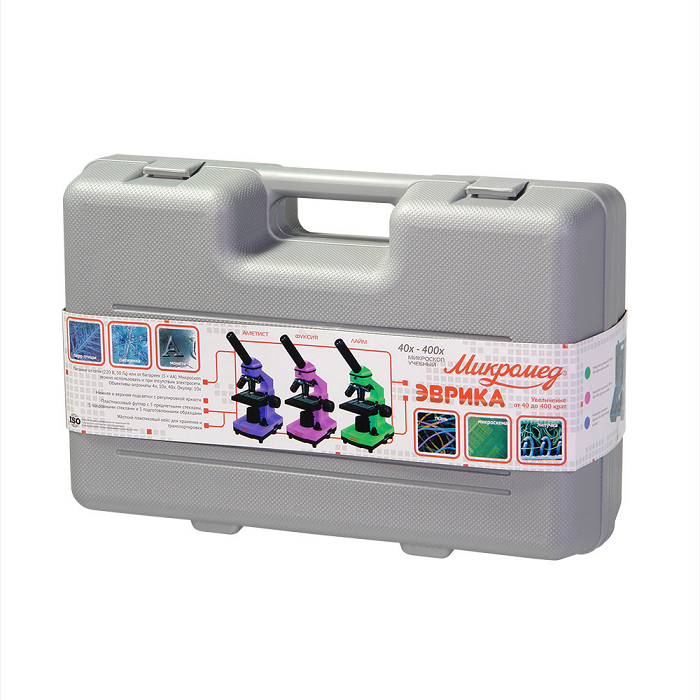 Микроскоп школьный Эврика 40х-400х в кейсе (аметист) 2