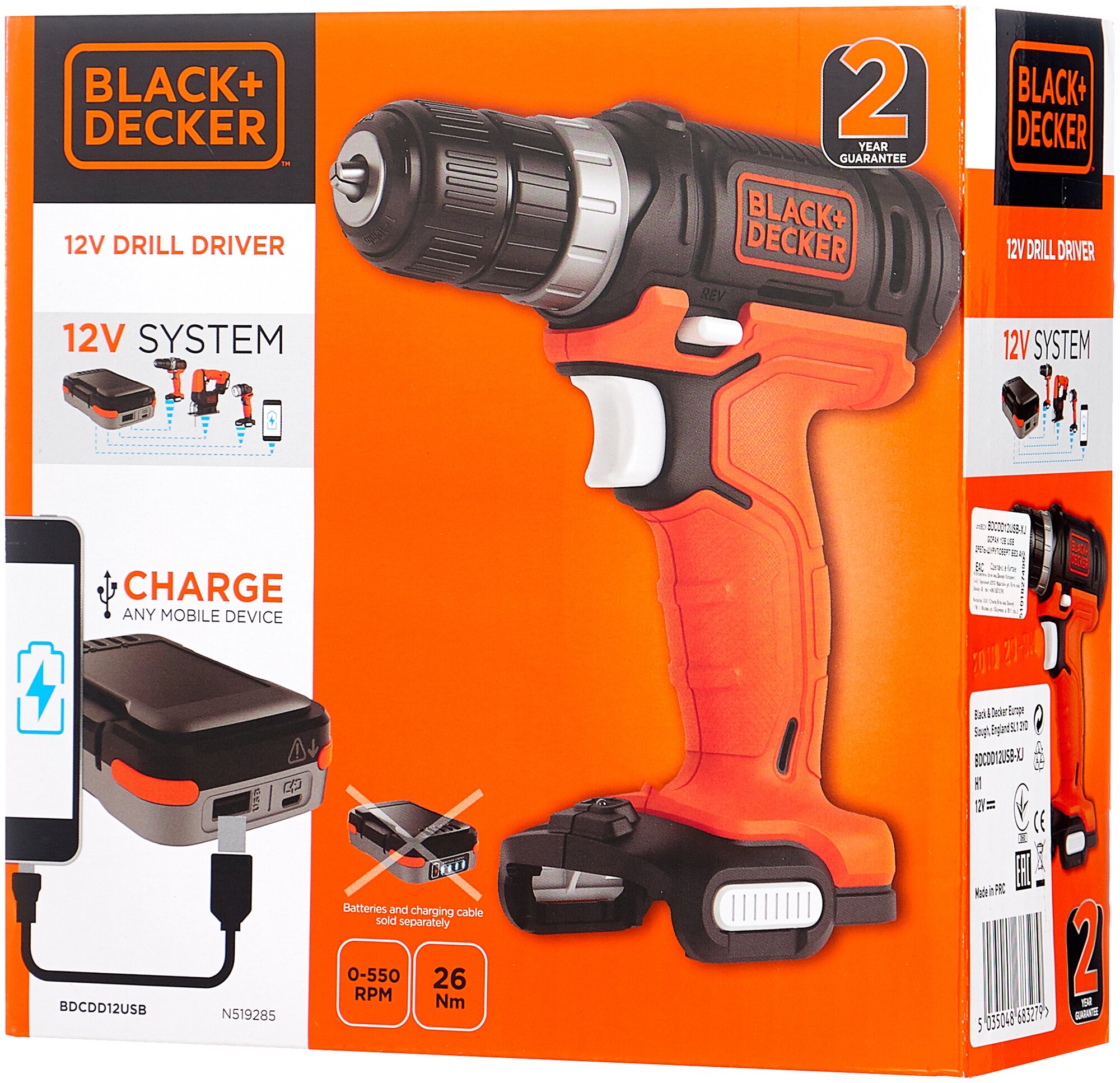 BLACK+DECKER BDCDD12USB, без аккумулятора