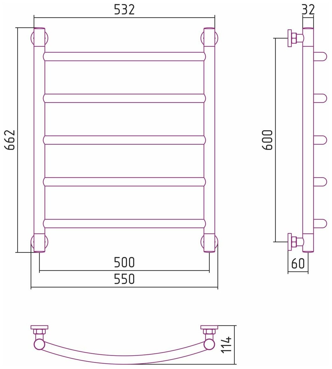 СУНЕРЖА Галант+ Полотенцесушитель 600х500 (5 ступ.) нерж. сталь, универс. подкл. 3/4" 00-0200-6050
