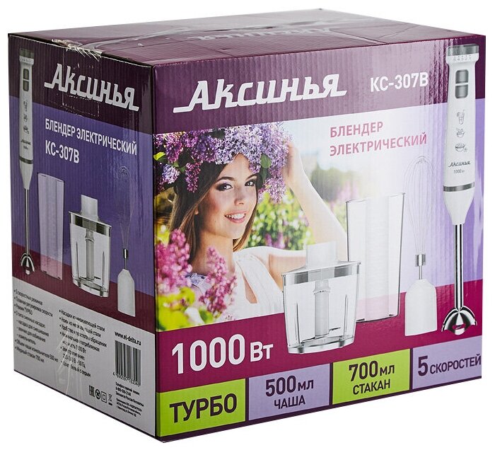 Блендер аксинья КС-307В белый с серым: 1000Вт, нож из нерж. стали,2 скорости,"Турбо"