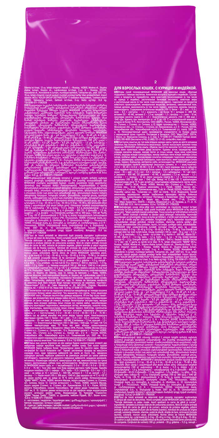 WHISKAS аппетитное ассорти для взрослых кошек с курицей и индейкой с нежным паштетом (1,9 кг)