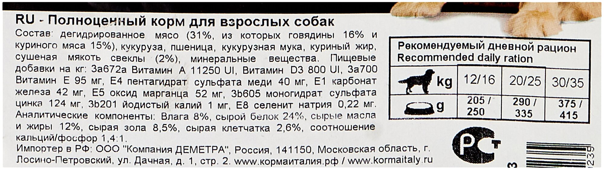 Meglium/ Меглиум Корм сухой для взрослых собак Курица Говядина 15кг Италия