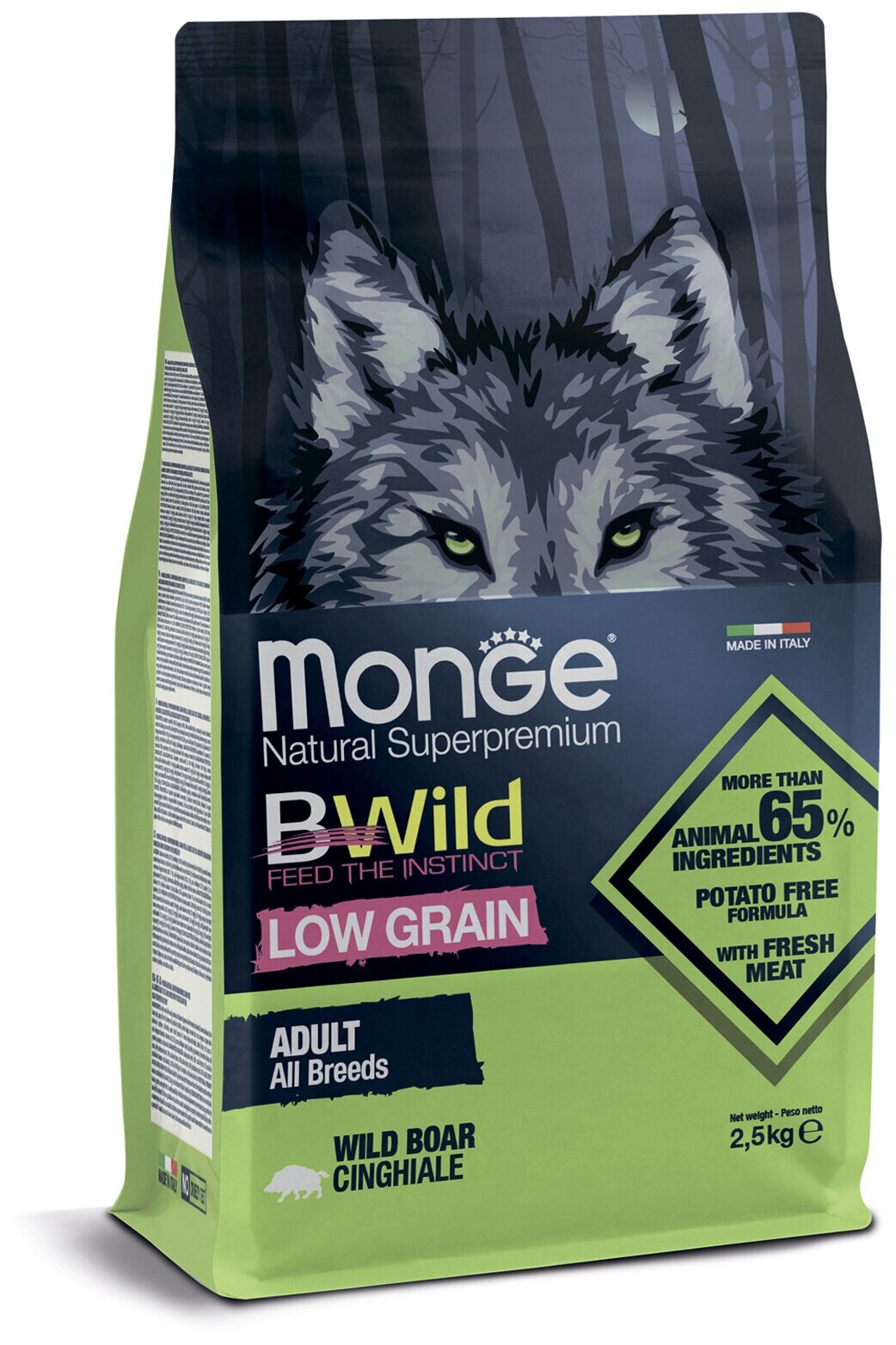 Сухой корм Monge Dog BWild LOW GRAIN, для взрослых собак, низкозерновой, из мяса дикого кабана 2,5 кг