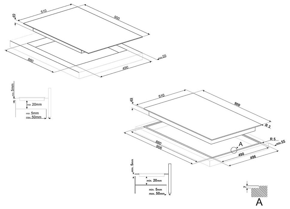 | Размеры для встраивания (ШхГ) | 880x490 мм |