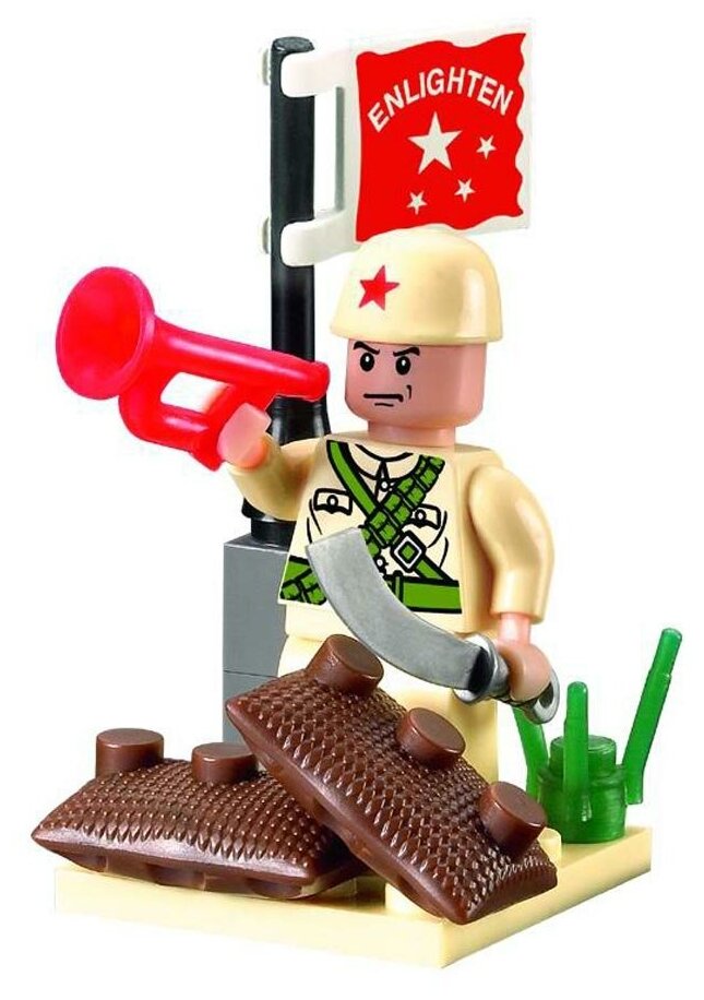 Лучшие цены. Из данного набора можно собрать корнета — военного офицера, который поднял флаг и готов повести своих солдат в бой. В одной руке у него длинный изогнутый меч, а в другой труба, при помощи которой он воодушевляет своих бойцов. Сам корнет стоит за двумя мешками, служащими ему укрытием. Данный набор из серии «Военная зона» подойдет детям, увлекающимся военными играми. Магазины в вашем городе.