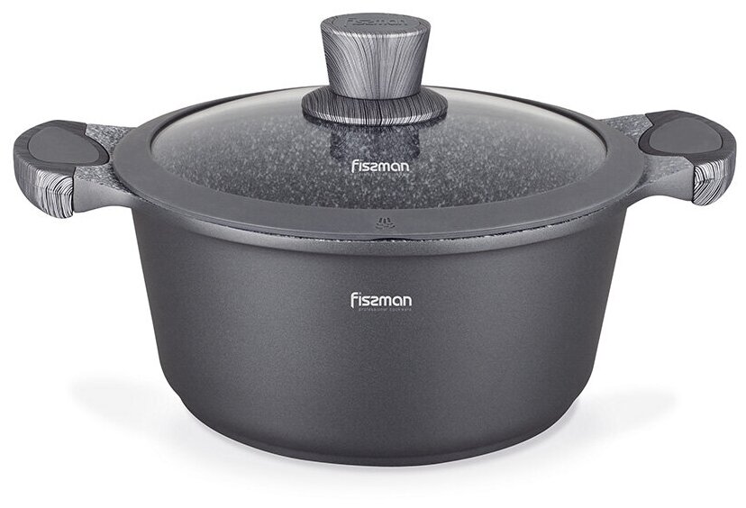 5041 FISSMAN Кастрюля PRESTIGE 20x9,5см / 2,4л с крышкой (алюминий с антипригарным покрытием Greblon C3) Ручки-бакелит с покрытием «софт тач»; Крышка-стекло; Индукция