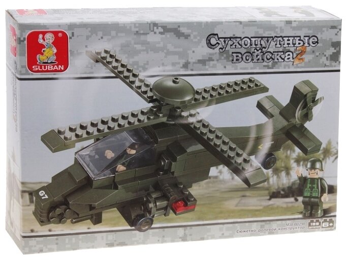 Лучшие цены. Уникальный военный вертолет от компании Sluban. Собирая конструктор, ребенок развивает воображение, мелкую моторику рук, пространственное и логическое мышление. Ребенок сможет часами играть с этим конструктором, состоящим из 199 деталей. Яркая легкая и удобная игрушка не позволит скучать ни взрослым, ни детям. Магазины в вашем городе.