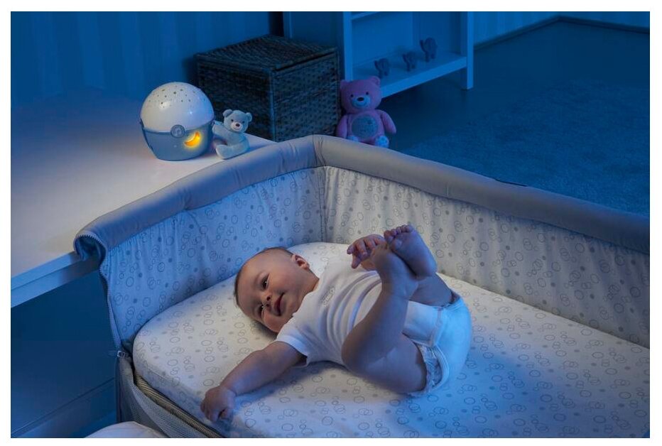 Лучшие цены. Игрушка-проектор Chicco «Звёзды» предназначена для детей с рождения. Имеет богатый выбор мелодий: от классических до звуков природы. Проектор может светить мягким светом или создавать на потолке звёздное небо. Дополнен функцией ночника. Игрушку-мишку можно отсоединить. Когда малыш начинает плакать, игрушка включается автоматически, и начинает играть успокаивающая музыка. Магазины в вашем городе.