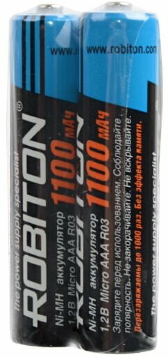 Ni-Mh аккумуляторы ROBITON 1100MHAAA SR-2 13561, 1.2В, 1100мАч, размер ААА (HR03), металлогидридные, 2шт