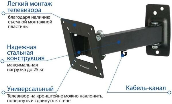Кронштейн Kromax OPTIMA-103 черный 10-28" max 25кг VESA 100x100 поворотно-выдвижной 1 690 ₽ Подробнее