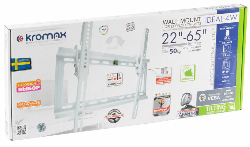Кронштейн для телевизора Kromax IDEAL-4 белый 22"-65" макс.50кг настенный наклон