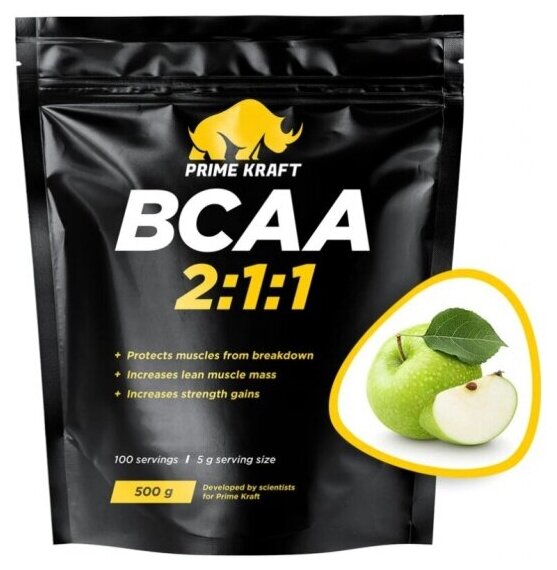 Аминокислоты Prime Kraft BCAA 2:1:1 дойпак (500 гр.) (Зелёное яблоко)