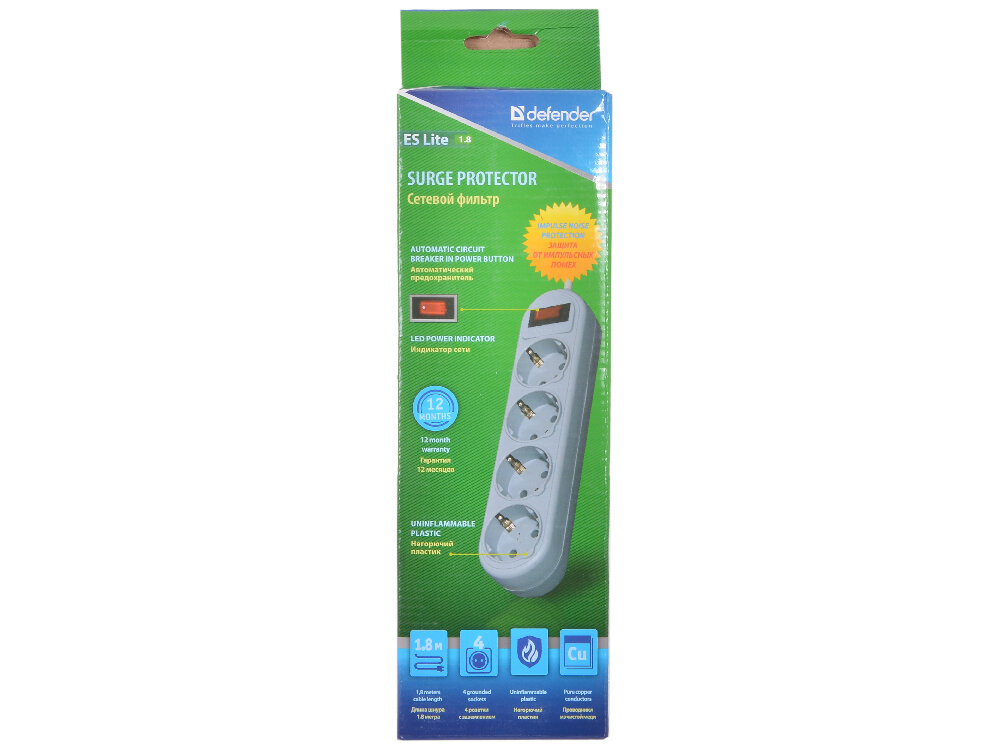Сетевой фильтр Defender ES Lite - 4 розетки - 1,8 м