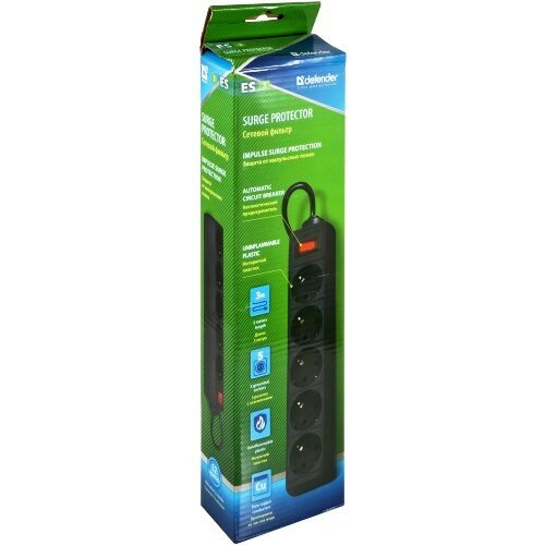 Сетевые фильтры и удлинители Сетевой фильтр Defender ES - 5 розеток чёрный - 5,0 м