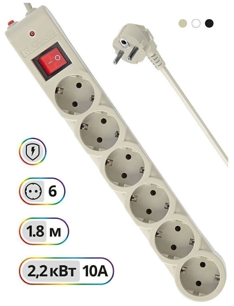 Defender Сетевой фильтр Defender DFS 601 1.8m 99406