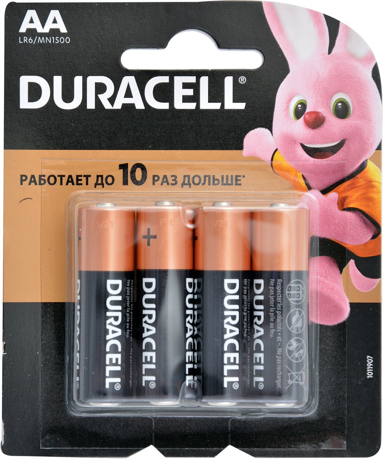 Батарейки Duracell, пальчиковые АА LR6, упаковка 4 шт.