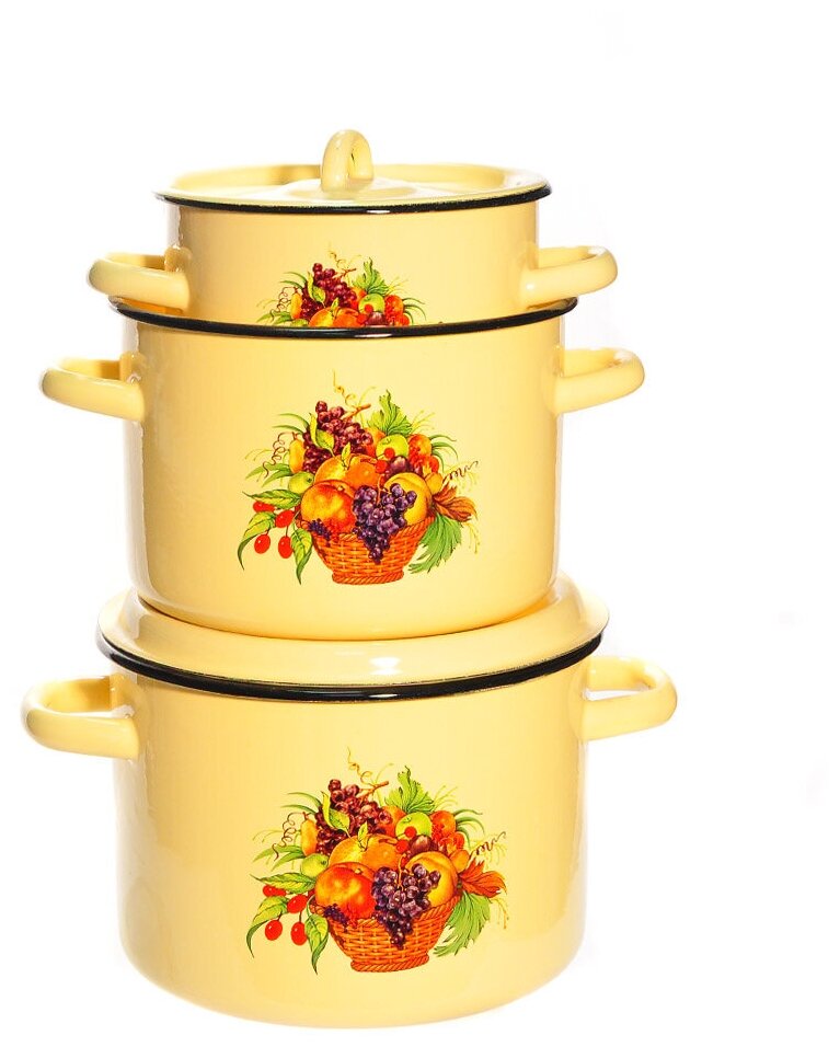 Набор кастрюль эмалированных 1,5л,2,9л,4,5л Экзотика СтальЭмаль