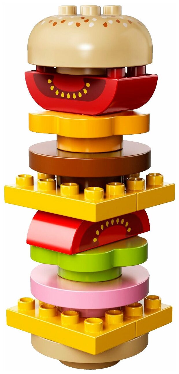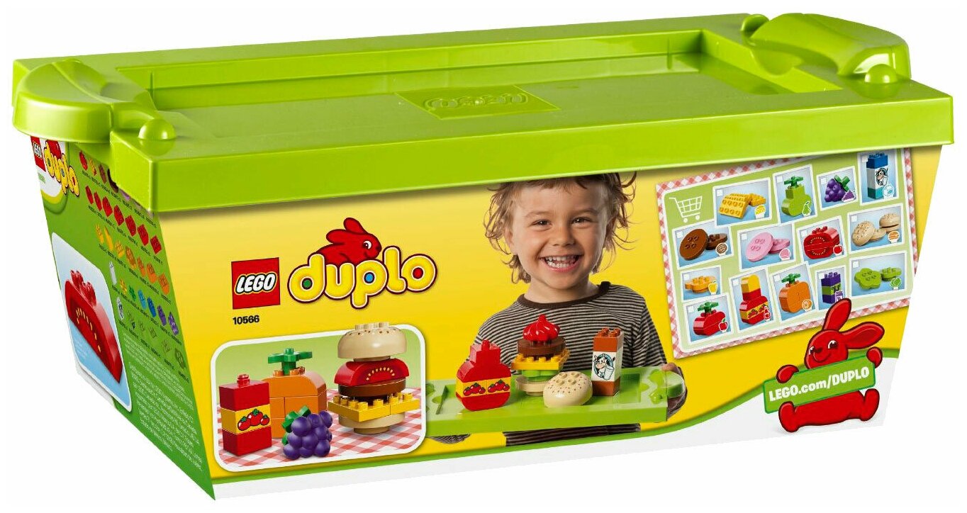 Лучшие цены. Набор Лего 10566 прекрасно подойдёт для самых маленьких кулинаров. Внутри удобного контейнера есть множество ярких и оригинальных деталей, позволяющих создавать копии обычных продуктов. Благодаря красочной пошаговой инструкции малыш сможет устроить настоящий пикник, состоящий из свежего хлеба, фруктов, овощей и молока. При желании можно освоить приготовление сэндвичей и гамбургеров, размещая между половинками хлеба мясо, томаты, сыр и листья салата. Магазины в вашем городе.