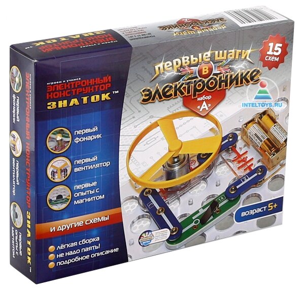 Лучшие цены. Вам будет предложено собрать свой первый фонарик, первый вентилятор, провести первые эксперименты с магнитом — всего 15 разных проектов, наглядно показывающих принципы работы простейших электронных устройств. Для того, чтобы ребёнок научился не просто собирать электрические схемы, а задумывался над собранным проектом, мы поместили комментарии с пояснениями и задания на быстрое усвоение важных знаний по физике. Абсолютная безопасность и простота сборки — не надо паять. Магазины в вашем городе.