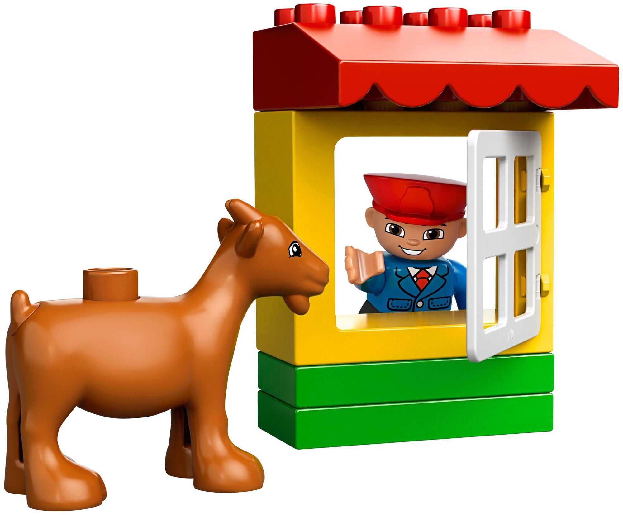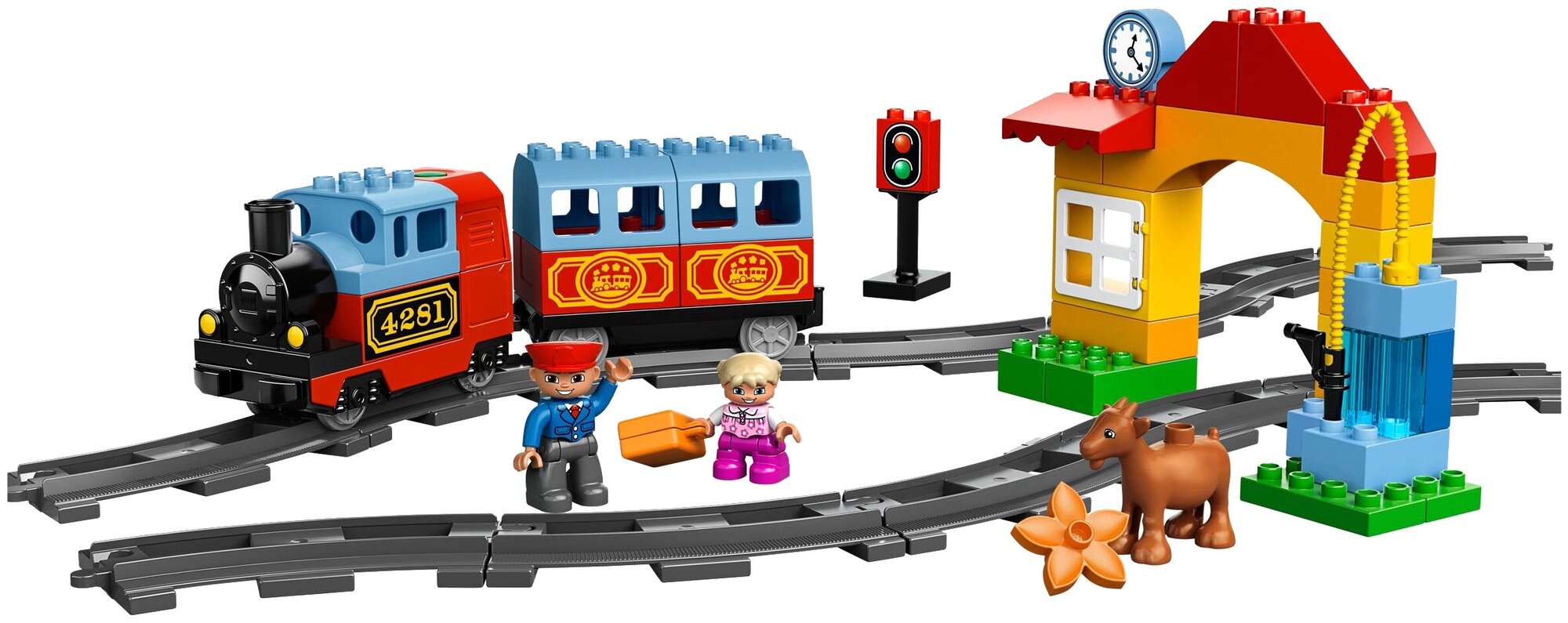 Лучшие цены. Конструктор LEGO Duplo 10507 «Мой первый поезд» порадует ребёнка яркостью красок. Крупные детали набора легко сочетаются друг с другом, способствуя развитию мелкой моторики в ходе игры. Комплект включает 52 детали, из которых можно создать железнодорожное полотно, поезд, заправочную станцию и кассу. Фигурки машиниста и пассажира сделают игру ещё более интересной. Их можно размещать внутри поезда, для этого достаточно снять крышу вагона. Для большей реалистичности в наборе имеются дополнительные аксессуары. Магазины в вашем городе.