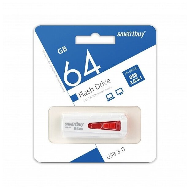 Флеш-карта SmartBuy 64 гб Iron USB 3,0, бело-красная (SB64GBIR-W3)