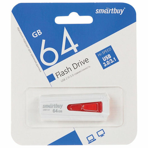 Флеш-карта SmartBuy 64 гб Iron USB 3,0, бело-красная (SB64GBIR-W3)