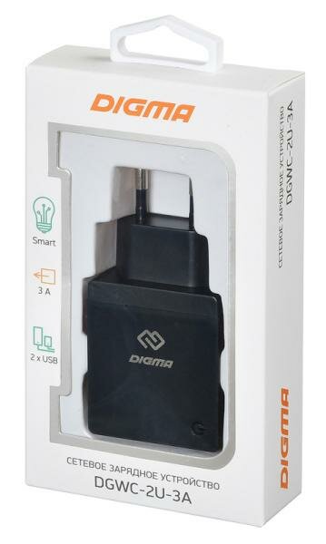 Сетевое зарядное устройство DIGMA DGWC-2U-3A-BK, черный