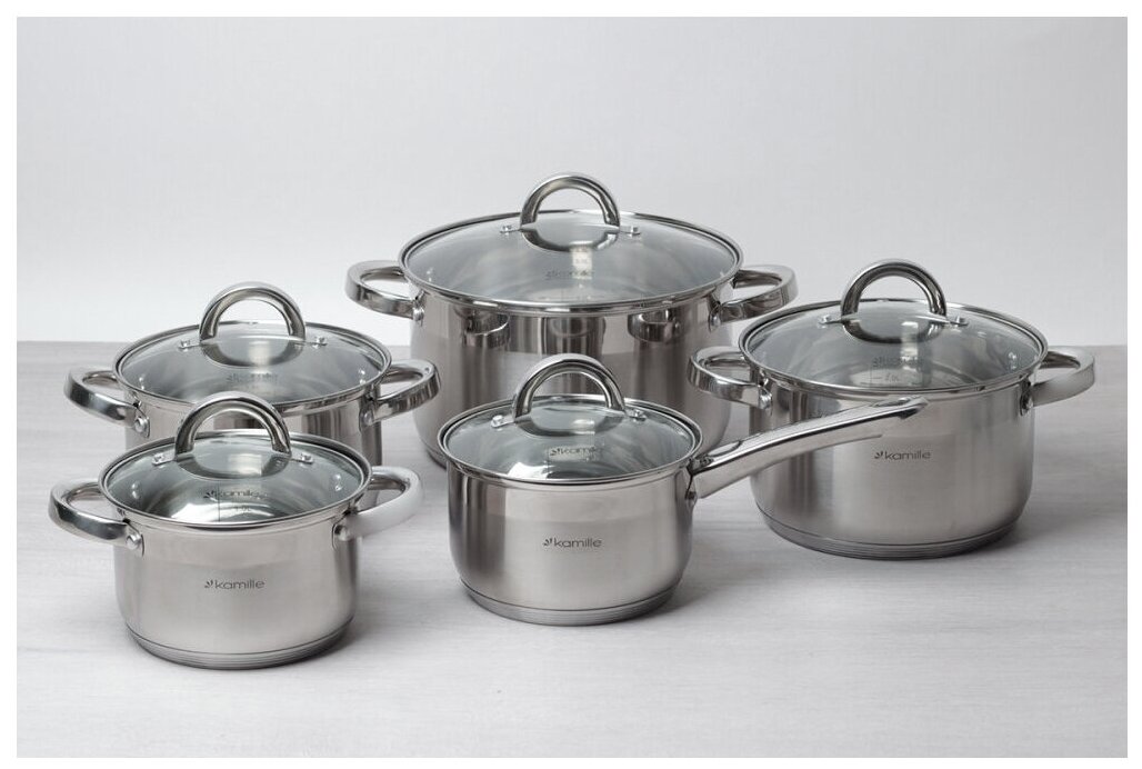 Набор посуды 10 предметов из нержавеющей стали Kamille КМ-5633S (ковш 1,8 л; кастрюли 1,8 л; 2,5 л; 3,8 л; 5,8 л)