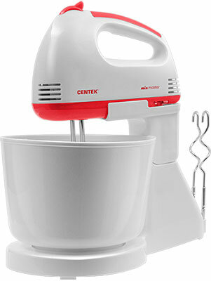 Миксер с чашей Centek CT-1113 (белый/красный) 170Вт, 6 скоростей+турбо, взбивание/замешивание
