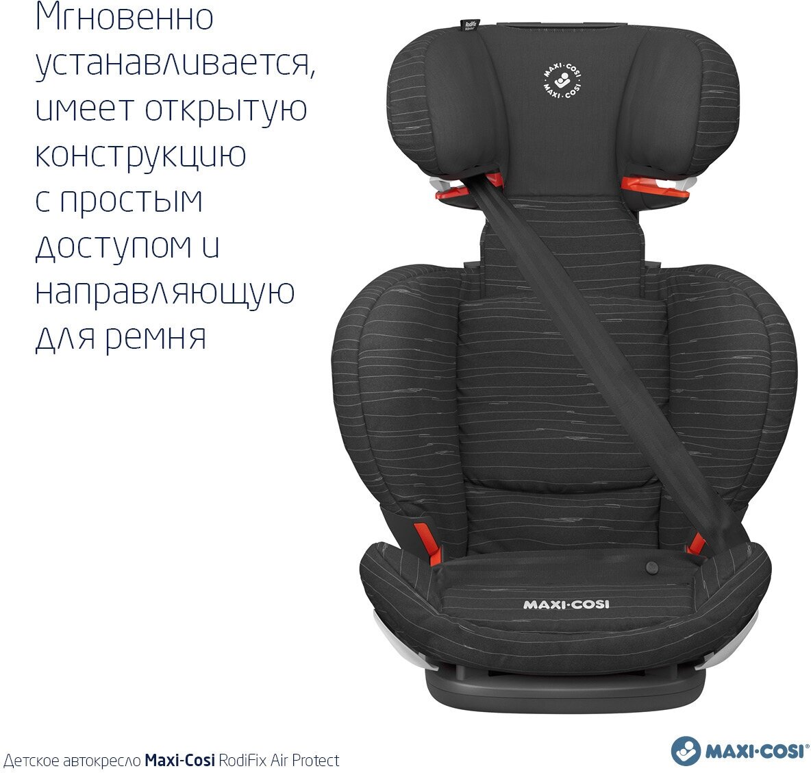Лучшие цены. Автокресло Maxi-Cosi Rodi Fix Air Protect оснащено разъемами IsoFix для большей устойчивости в автомобиле и не имеет собственных ремней безопасности, ребенок пристегнут штатным ремнем, специальные направляющие ремней находятся на подголовнике и в области бедер. Устанавливается исключительно по ходу движения автомобиля на заднем сиденье. Кресло стало более глубоким, что позволяет усадить ребенка глубже и тем самым увеличить уровень пассивной безопасности. Магазины в вашем городе.