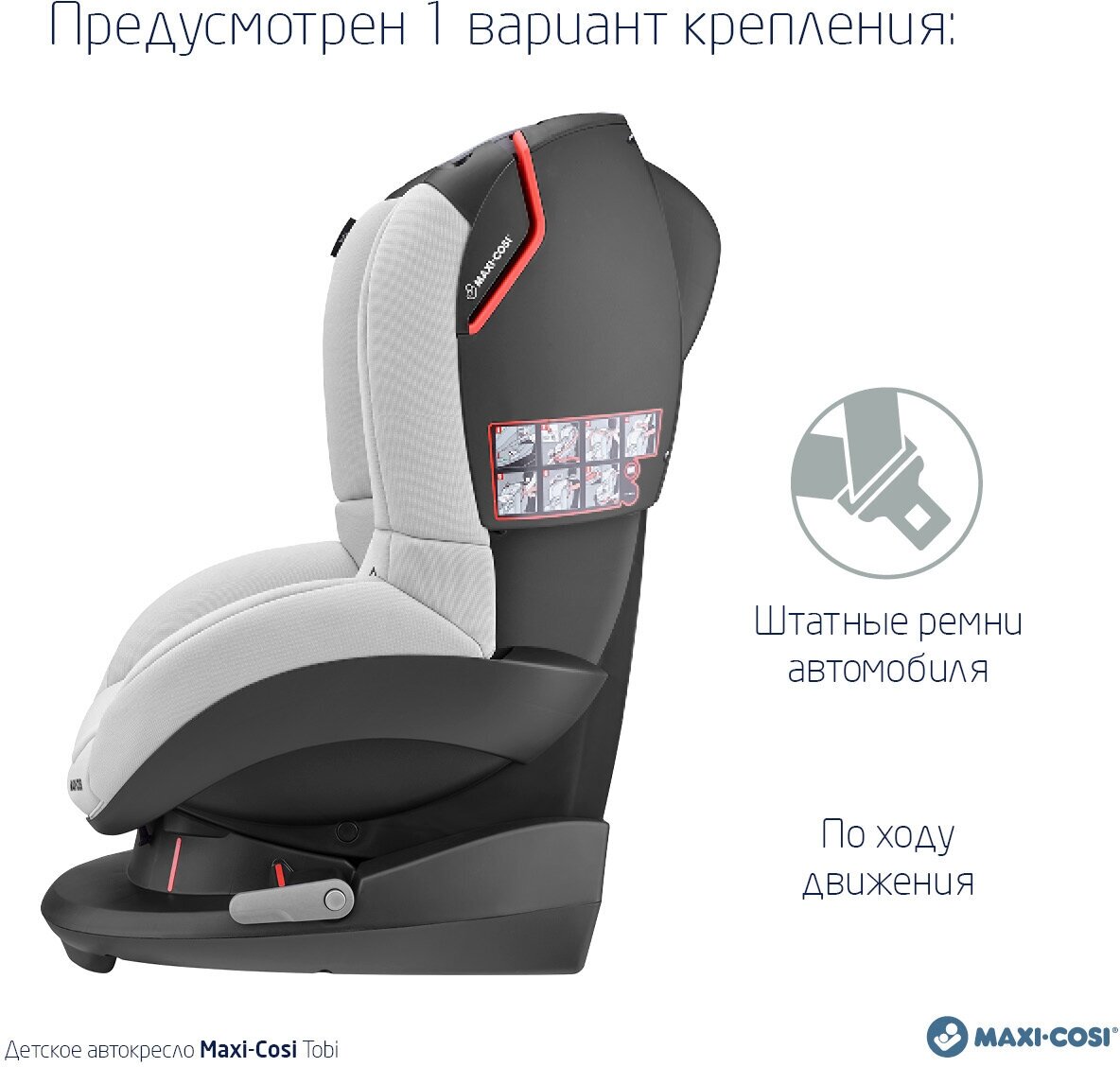 Лучшие цены. Автокресло Maxi-Cosi Tobi предоставит ребенку высокое положение в автомобиле, что позволит ему видеть все, что происходит внутри и снаружи. А если он захочет вздремнуть — автокресло легко откидывается назад. Ремень безопасности имеет цветовой индикатор, который гарантирует надежную фиксацию ребенка в автомобиле. Автокресло имеет низкий риск неправильной эксплуатации. По отзывам родителям, это мягкое и комфортабельное автокресло, которое за счет регулируемой спинки идеально подходит для долгих путешествий. Магазины в вашем городе.
