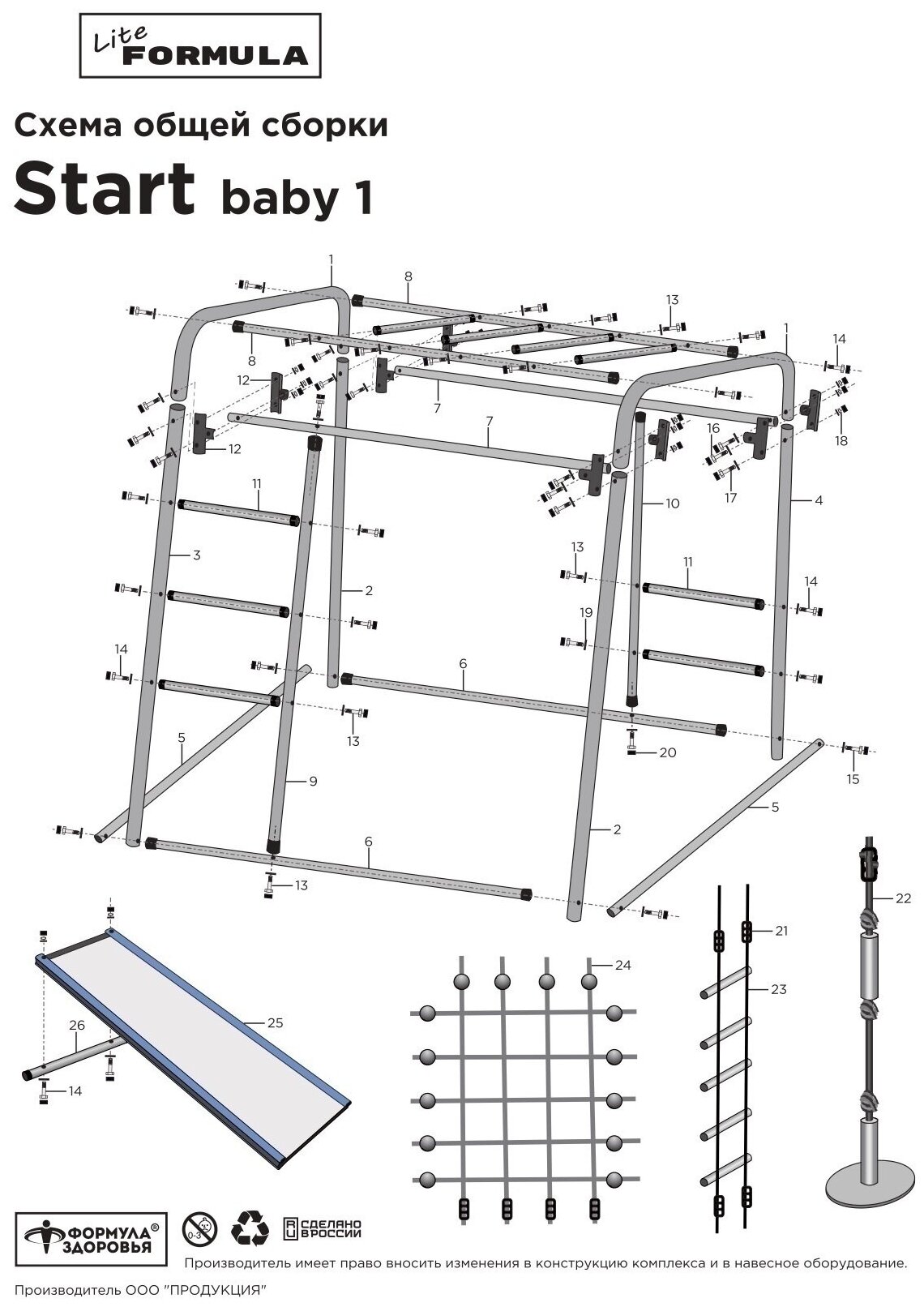 Детский спортивный комплекс напольный игровой Start baby 1 Pastel Формула здоровья/ игровой спортивный комплекс детский бирюзовый/серый