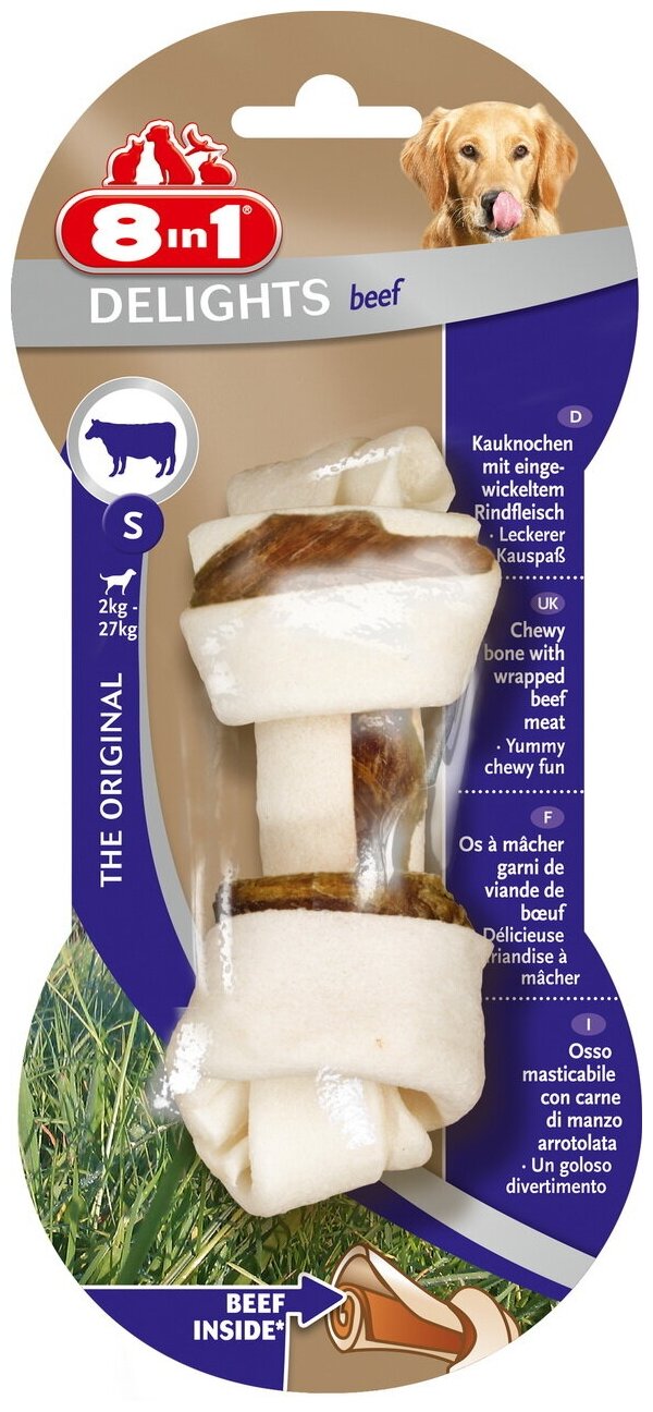 Косточка 8in1 Delights Beef S с говядиной, для мелких и средних собак 11 см 8in1 4048422108764