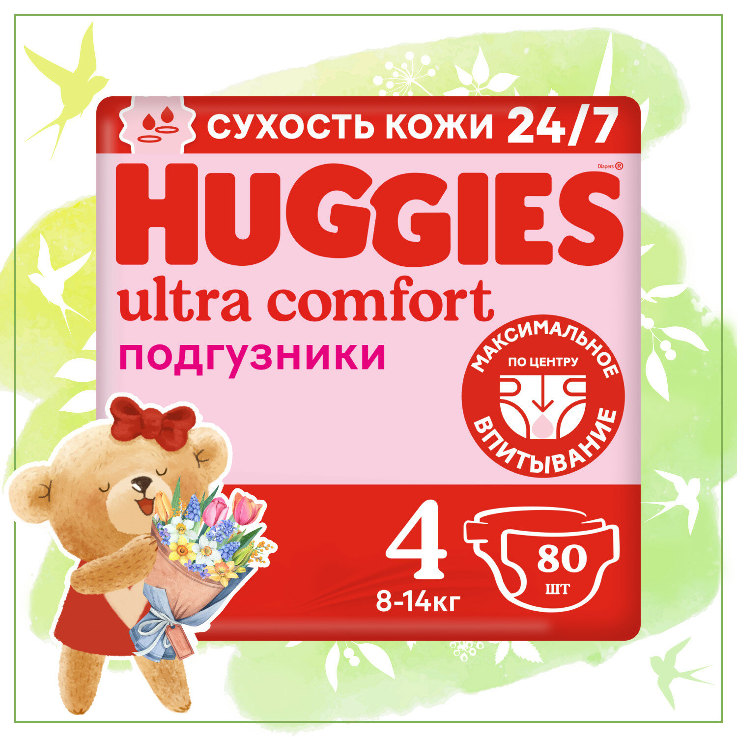 Huggies подгузники Ultra Comfort для девочек 4 (8-14 кг), 80 шт.