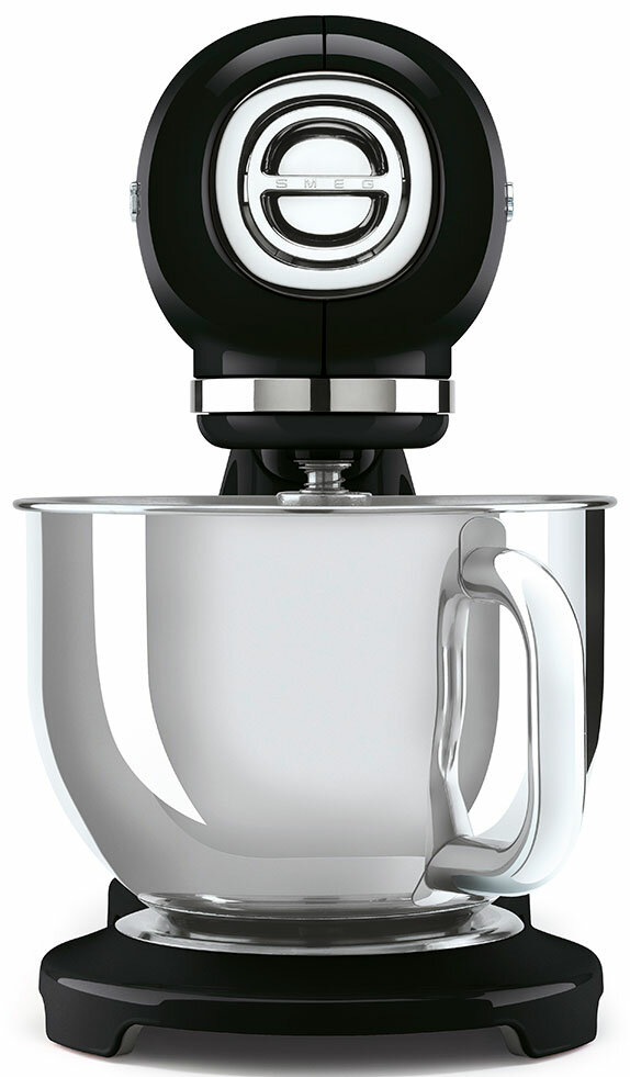 Миксеры SMEG/ Планетарный миксер, Мощность 0,8 кВт; Объем чаши 4,8л; Регулировка скорости, 2 насадки для взбивания, 1 насадка для теста, крышка для чаши, черный