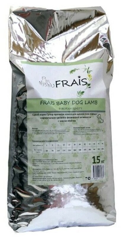 Сухой корм для щенков всех пород с нормальным уровнем активности Frais Baby Dog Lamb, 15 кг