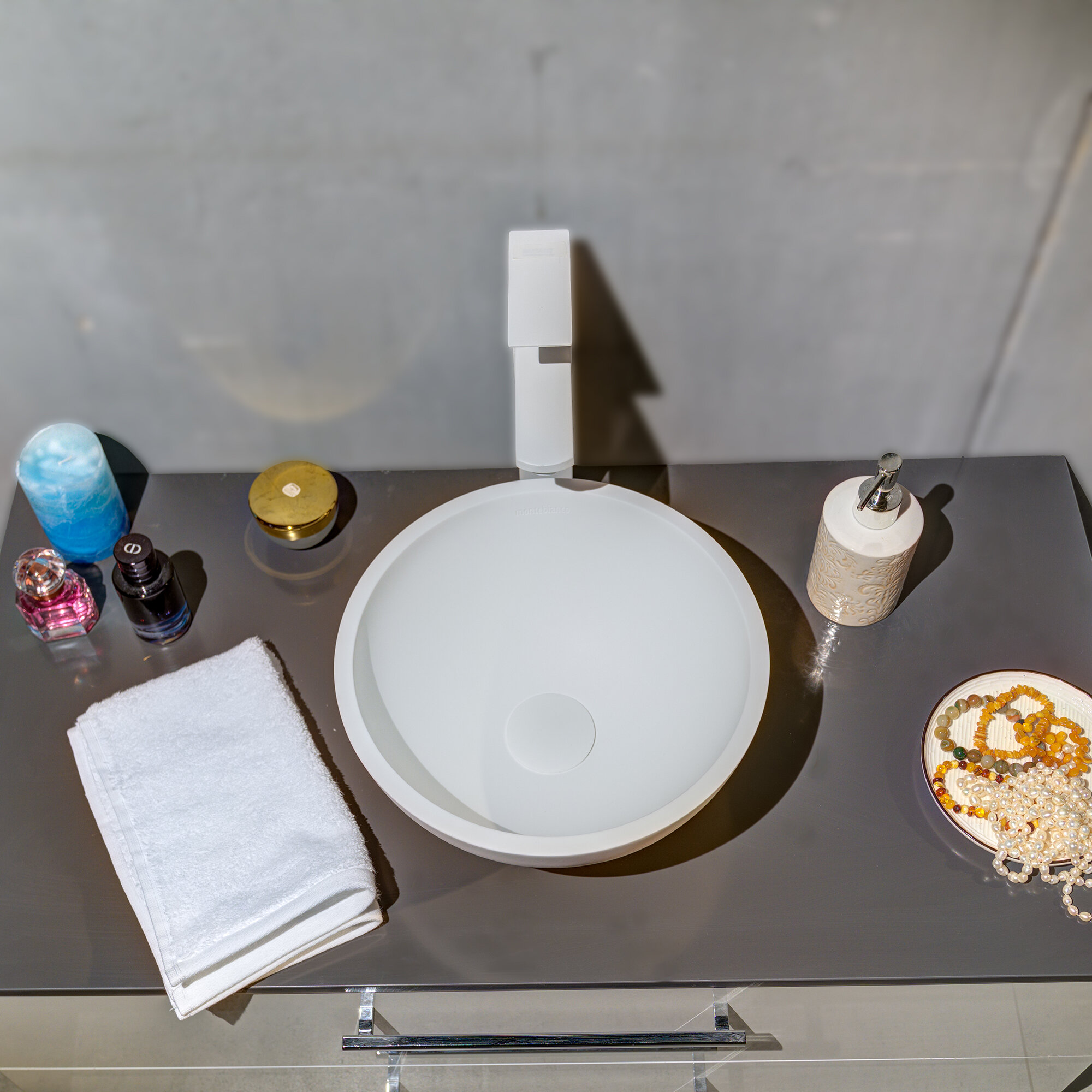 Раковина для ванной матовая из искусственного камня, накладная, Montebianco Nemi Due