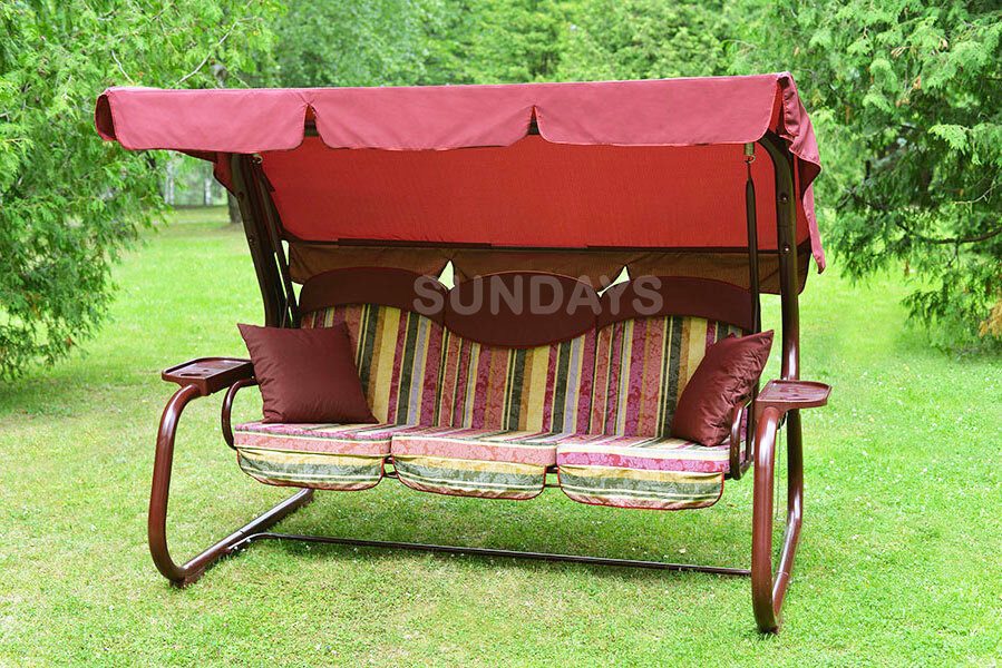 Качели садовые 3-х местные Ольса Мастак каркас бордовый, ткань разноцветная полоска с910