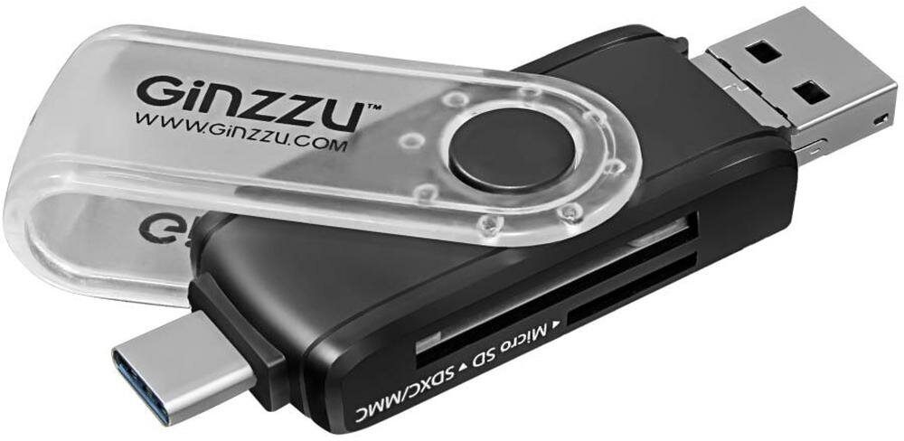 Кард-ридер Ginzzu GR-325B OTG TYPE C/microUSB/USB2.0 SD/microSD