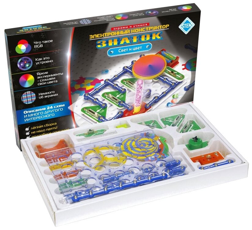 Конструктор Электроный конструктор знаток "Свет и цвет", игрушки для детей в подарок для девочек и мальчиков
