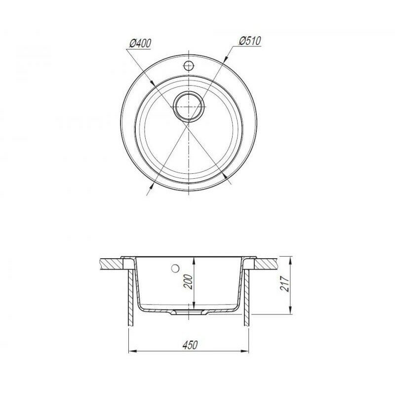 Мойка для кухни врезная каменная Dr. Gans ГАЛА-510, цвет черный, круглая, 510х510х217 мм