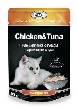 GINA TUNA&CHICKEN пауч для кошек филе цыпленка с тунцом в соусе 85г
